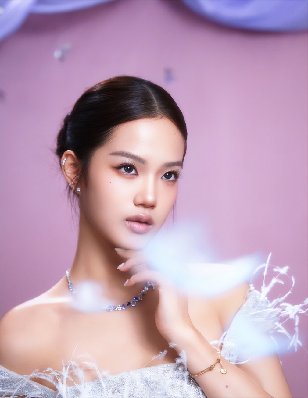 二女儿的气质就截然不同了,她穿了一件款式简约的银色礼服,头发挽起,眼神犀利,美丽又霸气。