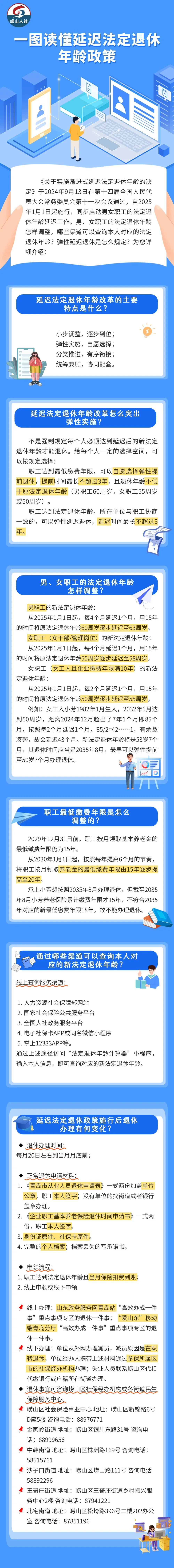 鲁网10月11日讯青岛市崂山区人力资源和社会保障局推出“周周讲”与“月月答”栏目,围绕就业创业、社会保障、人事人才、劳动关系类各项政策法规,以“权威解读、精准服务、互动交流”为宗旨,聚焦群众和企业关切的人社热点、难点问题,采用通俗易懂的宣传形式为大家解疑释惑。本期解读《延迟法定退休年龄政策》。(本网记者)