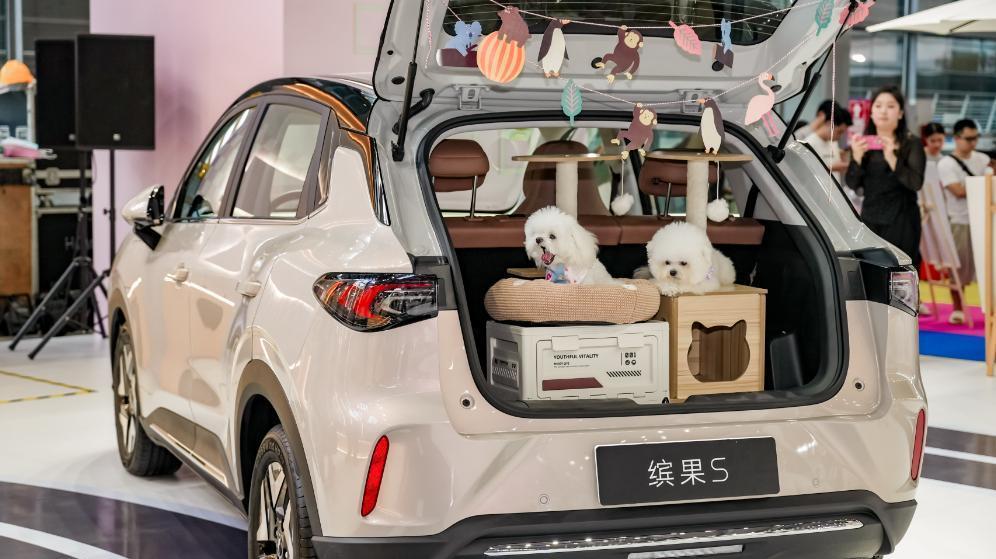 还有就是缤果S的智能化,它全系标配了2K分辨率的中控屏,内置全新一代灵语AI中枢体,并且深度融合了DeepSeek大模型,可以用方言进行对话交互,也可以通过车机询问一些百科知识、用车知识等等,体验跟上了主流水准。另外缤果S还给养宠物的车主设计了专属的宠物模式,离车不下电,也可以远程控车,这也是它的一大卖点。