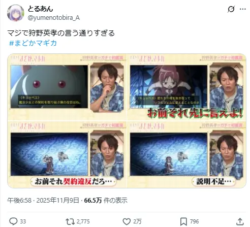 “你这家伙怎么不早说啊!”“这根本就是欺诈吧!违约都不足以形容!”“丘比,我真的超讨厌你!”他对着屏幕连珠炮式吐槽,满脸写着“三观崩塌”,甚至直言“这比现实里的虚假宣传离谱一百倍”。这段真情流露的讲评片段被网友截取传播后,立刻登上日本X平台热搜,评论区瞬间被“精准吐槽”“完全就是我当年的反应”“笑到捶桌但又很共情”等留言刷屏。