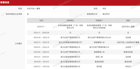 2019年1月宋昆卸任所有在管基金,2019年5月他加入易方达资产,担任联席总经理;2020年7月他还担任易方达私募基金的法定代表人、总经理、执行董事,直到2024年10月离开。此后宋昆休息了一阵子,2025年7月创立了友安私募基金,担任法人、董事。