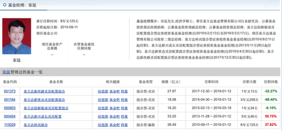 资料显示,宋昆是经济学硕士,2006年7月就加入易方达基金,从研究员做起,2010年9月开始担任基金投资部基金经理,2014年1月担任投资二部总经理。他曾管理易方达科讯、易方达新兴成长、易方达创新驱动、易方达新常态、易方达新丝路等多只基金。