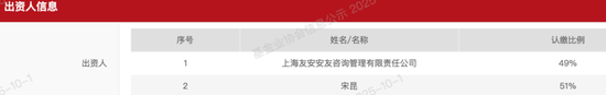 从出资人来看,原知名基金经理宋昆为友安私募基金的实际控制人,认缴比例为51%;上海友安安友咨询管理有限责任公司认缴比例为49%。