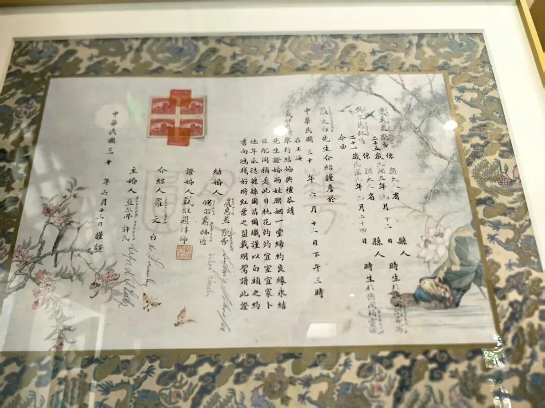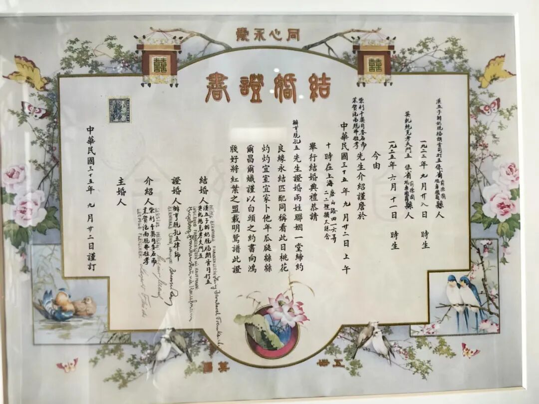 原来在1939-1946年间有大约366对犹太人在上海结婚他们的婚书也融合了中西特色以“百年好合”“比翼双飞”等图样装饰书写的却是德文与中文双语展出的这两份婚书正是这段特殊历史中文化交融的生动见证