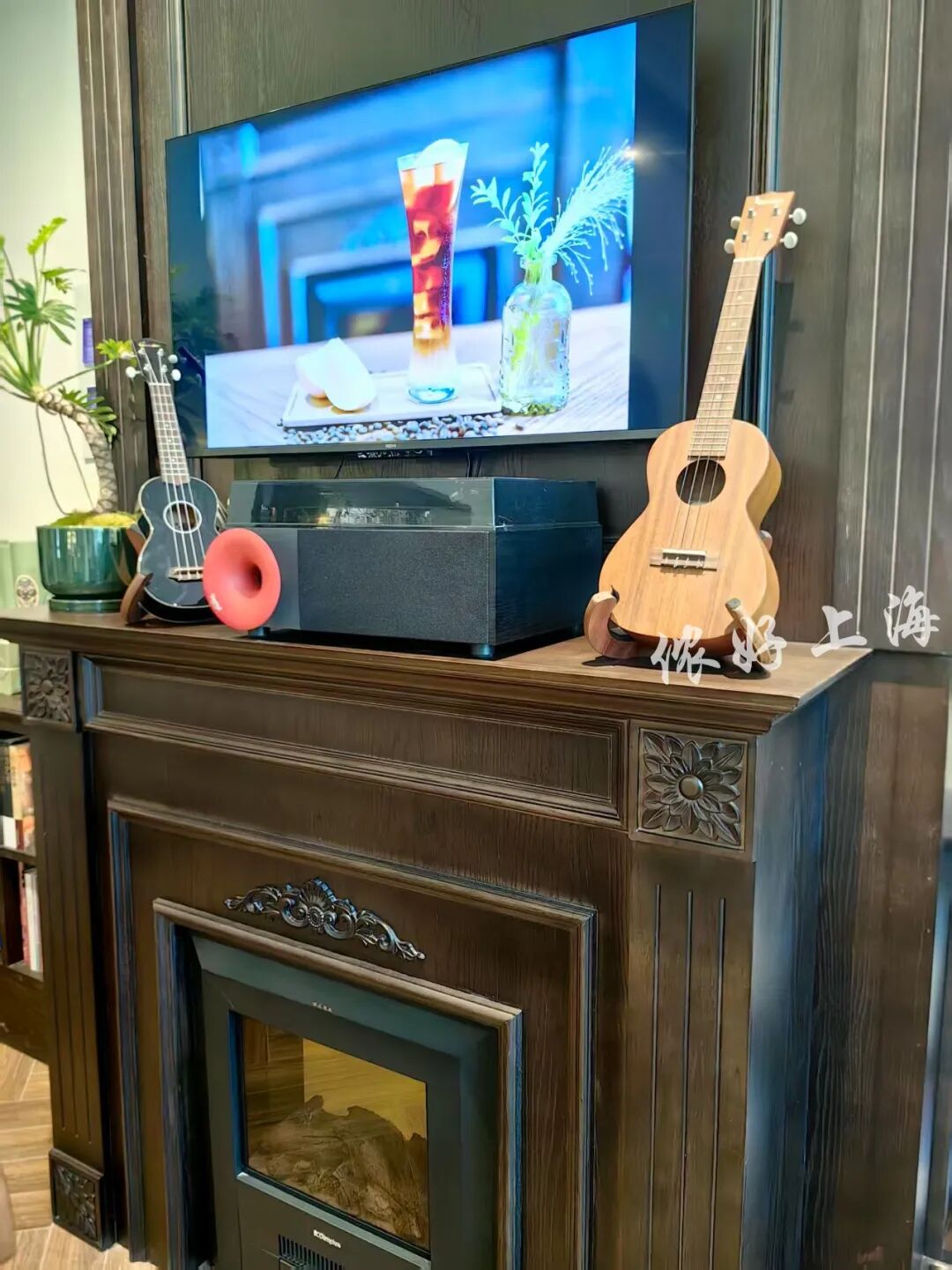 壁炉、尤克里里、灯具