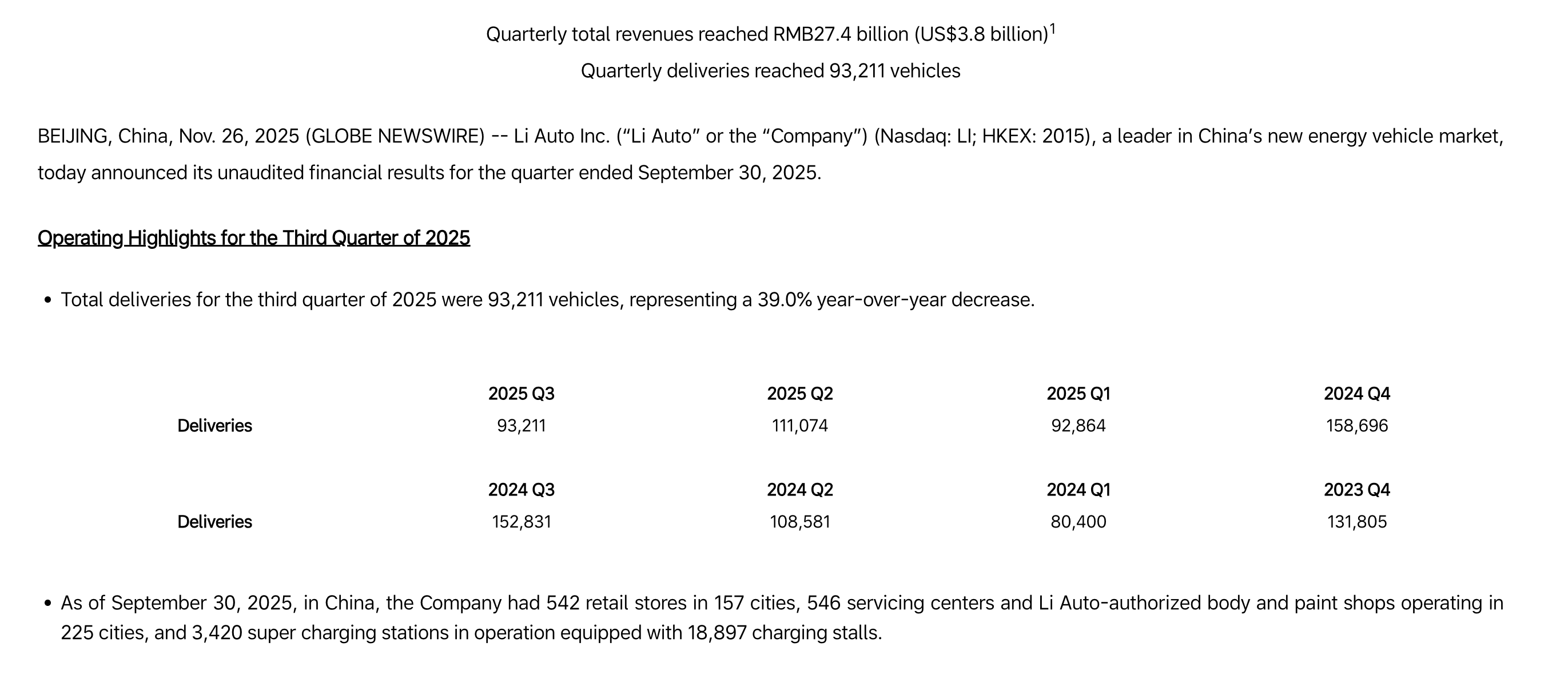 11月26日晚,理想汽车发布了2025年Q3的财报。经历战略调整期的理想,用一份财报让我们窥探到它“深蹲起跳”的能力。